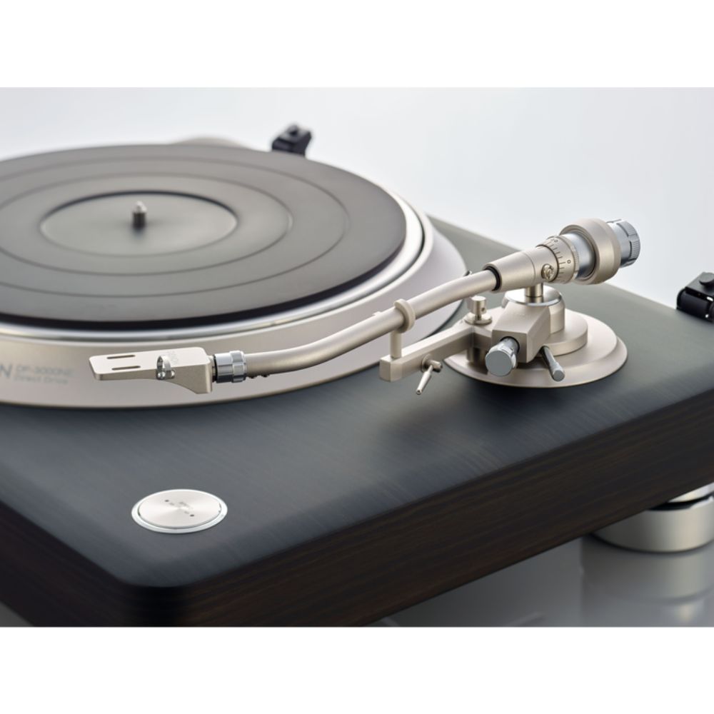 DP-3000NEのために新たに開発されたスタティックバランスS字型トーンアームを採用。これは、デノンがこれまでの歴史の中で開発してきた膨大な数のトーンアームの設計図を基に、機械的精度の高さ、操作が容易な調整機構、シンプルかつ美しい造形にこだわって作り上げられたものです。既に現役を退いたOBの技術者たちからのアドバイスも受けながら、有効長、オーバーハング、オフセット角などの要素を煮詰め、物理的な正確性を徹底的に追求しました。